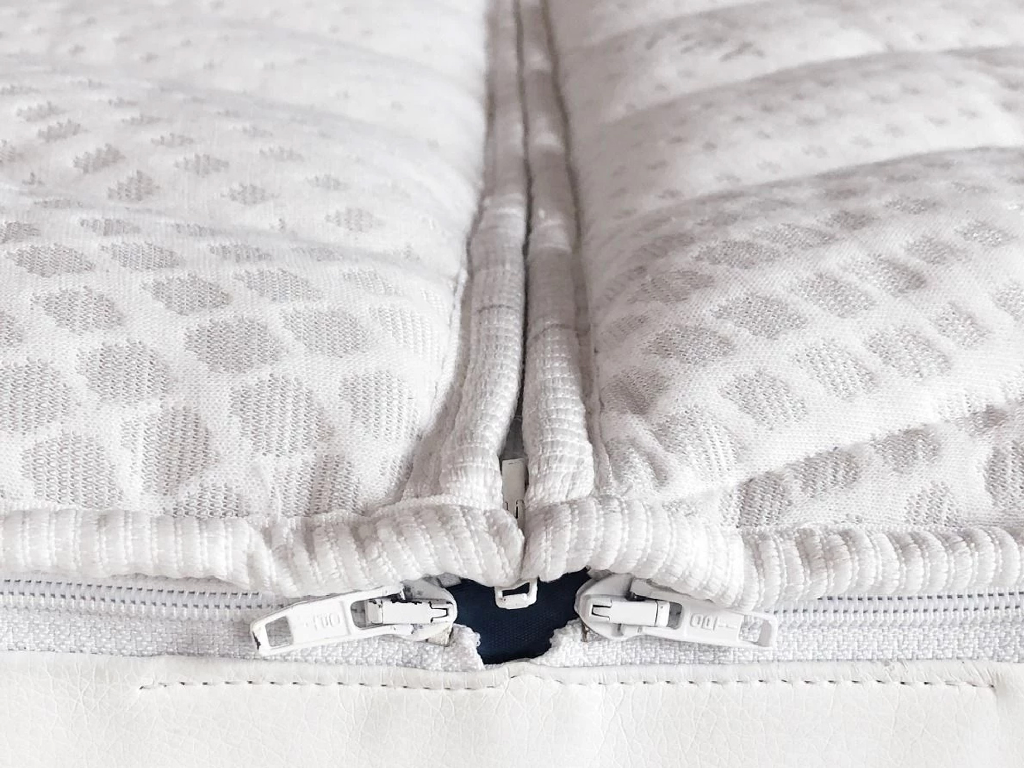 Der luxuriöse Matratzenbezug wird sorgfältig von Hand gefertigt, wobei sich die hochwertige Qualität selbst bis in das kleinste Detail fortsetzt. Die Oberseite des Matratzenbezugs ist mithilfe des speziellen Opti®Reißverschlusses auswechselbar. Auf diese Weise kann ein Oberteil problemlos mit einem anderen ausgewechselt werden. Sehr praktisch, wenn eines davon in die Wäsche muss.