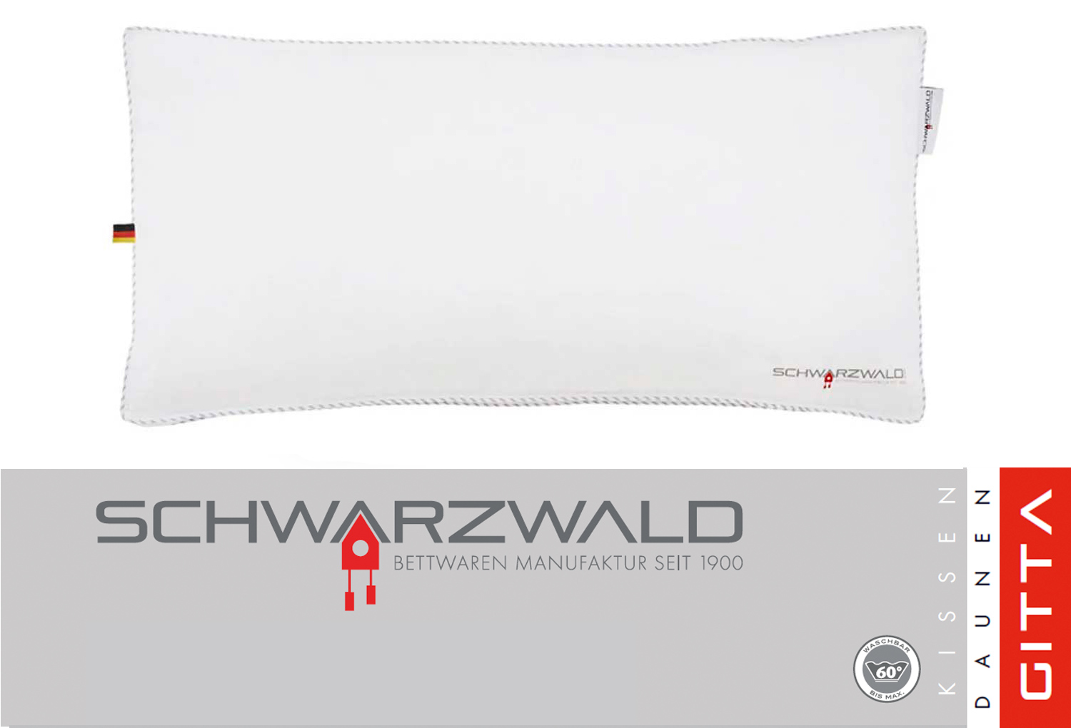 Unsere Schwarzwald-Kollektion entstand aus der Verbundenheit zu unserer Heimat. Bereits seit 1965 produzieren wir an unserem Standort in Lörrach am Rande des wunderschönen Schwarzwalds. Wir bieten diese schöne Kollektion sowohl mit Enten- als auch mit Gänsedaunen/-federn an. Selbstverständlich stammen alle Daunen und Federn garantiert aus dem sogenannten „Schlachtrupf“. Tierwohl steht bei uns an erster Stelle. Wir verwenden nachweislich keine Daunen/Federn von lebend gerupften Tieren und auch nicht von Gänsen/Enten aus Stopfmast. Das Kissen „GITTA“ aus unserer Schwarzwald-Kollektion ist ein klassisches Kopfkissen und erhältlich in 2 Stützkräften je 2 Größen. Das gesamte Sortiment besticht durch eine besonders hübsche und frische Aufmachung mit grau-weißer Biese und dezentem Logo Print. Alle unsere Kollektionen sind NOMITE ausgestattet, was sie besonders allergikerfreundlich macht. Daunen sind zudem sehr atmungsaktiv, feuchtigkeitsregulierend und temperaturregulierend, was für eine gute Schlafhygiene sehr wichtig ist. Für den einheitlichen Look empfehlen wir die Kassettendecken „GITTA“.