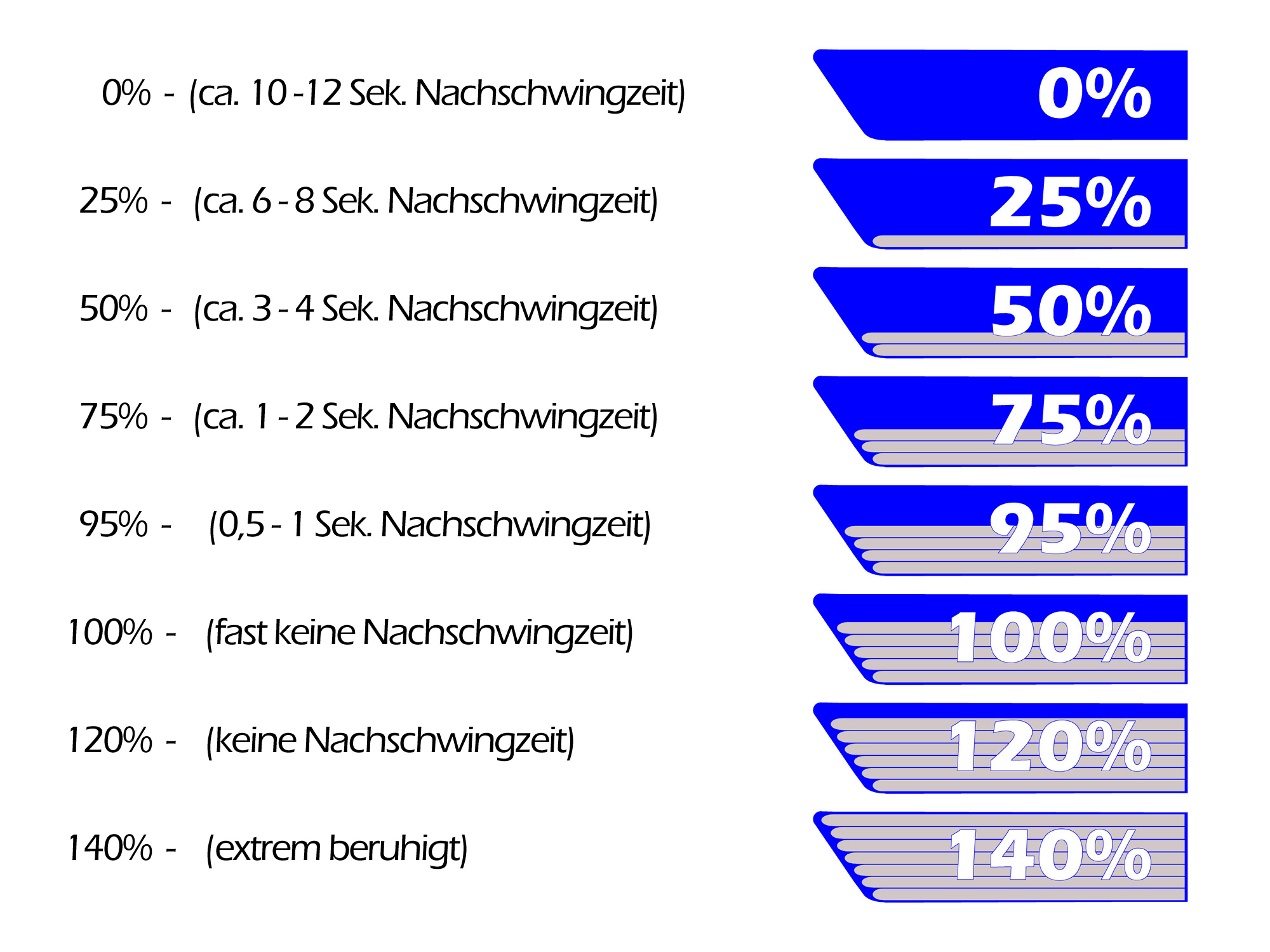 50% (ca. 3-4 Sek. Nachschwingzeit)