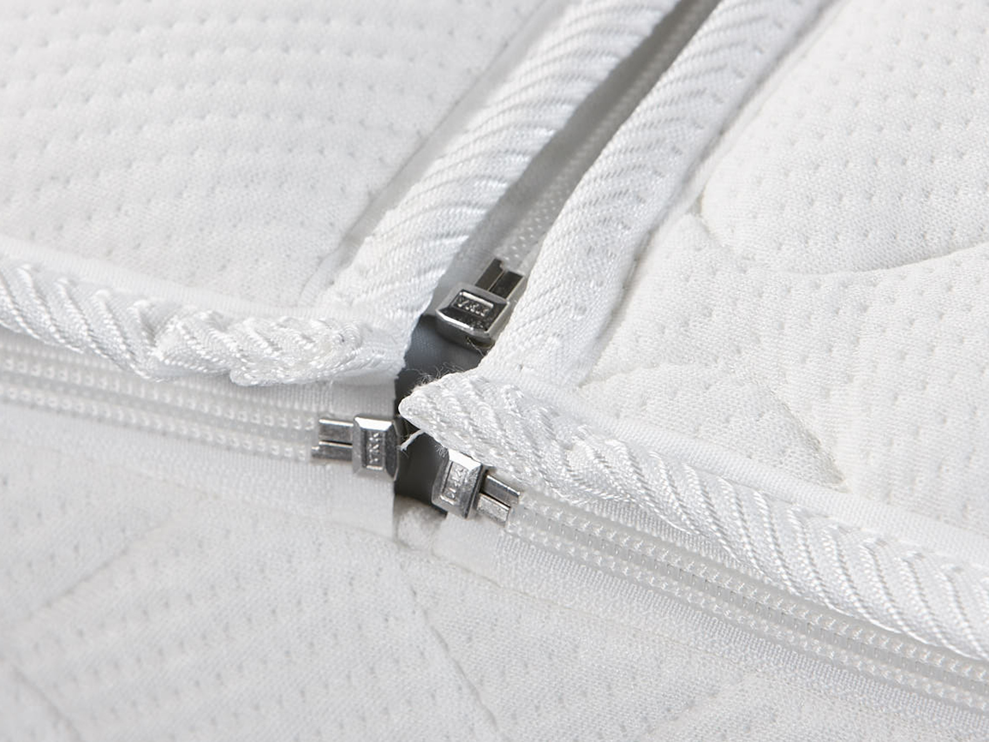 Ab einer Breite von 160 cm sind die Bezüge mit einem Reißverschluss ausgestattet, der eine Teilung ermöglicht. Die einzelnen Teile des Bezugs passen somit bequem in Ihre Waschmaschine. Der Reißverschluss ist dank der weichen Biese nicht zu spüren. Der Bezug ist bei 60 °C waschbar und für den Trockner geeignet.